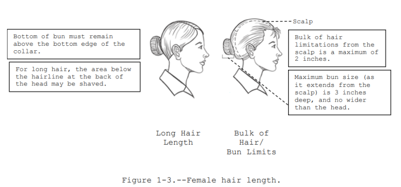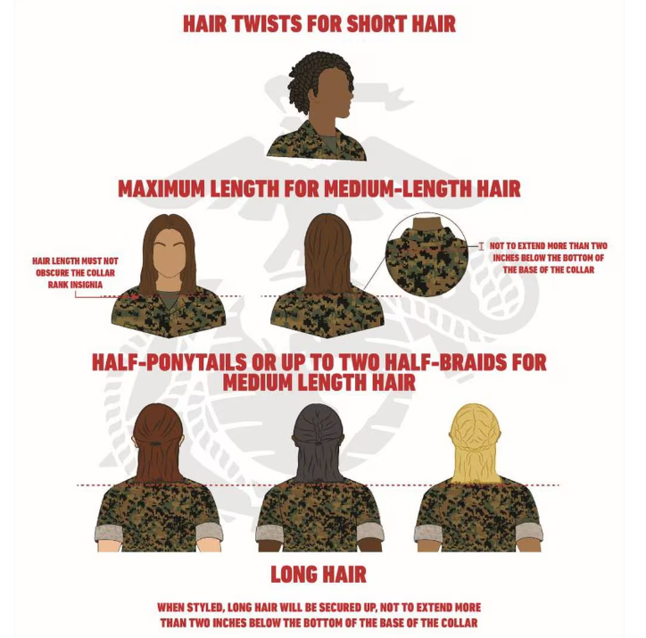 Short hair length for female Marines: twists are authorized for short hair (in all uniforms).
